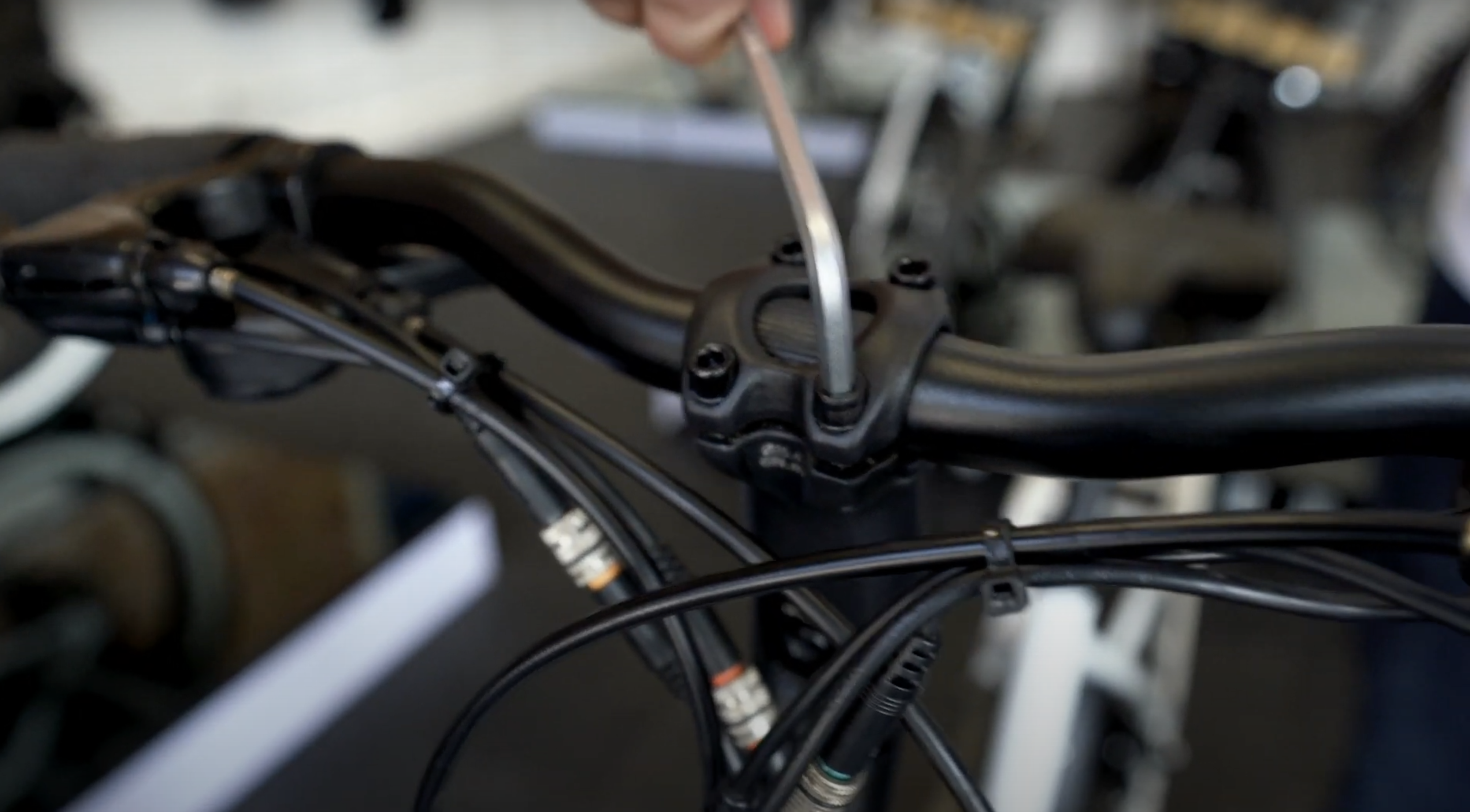 Loosening the stem Allen bolt and handlebar Allen bolt on a tooled adjustable stem.