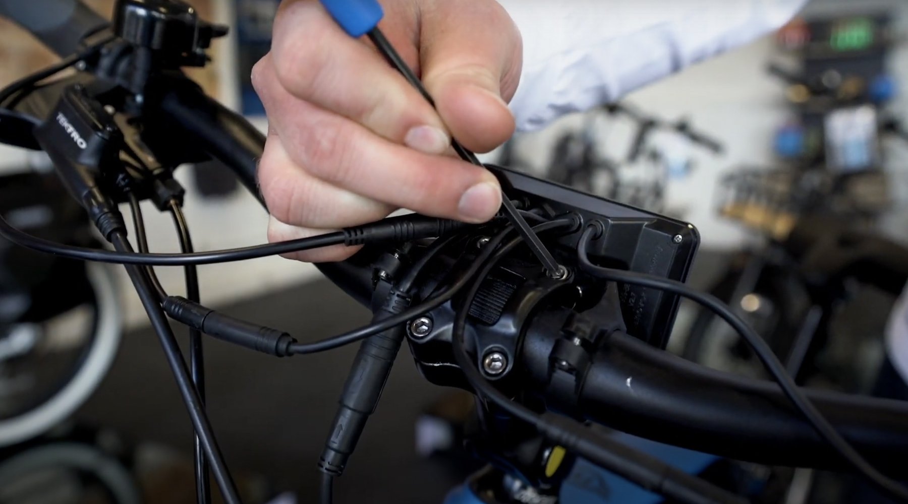 2. Behind the display, you’ll see a faceplate with 4 bolts; grab your 4mm Allen wrench and loosen those bolts, taking care not to snag your cables.
