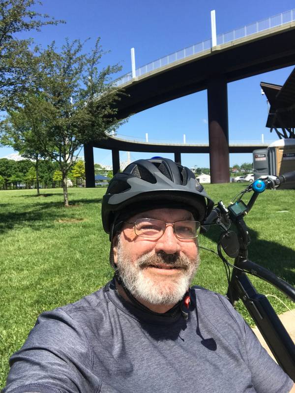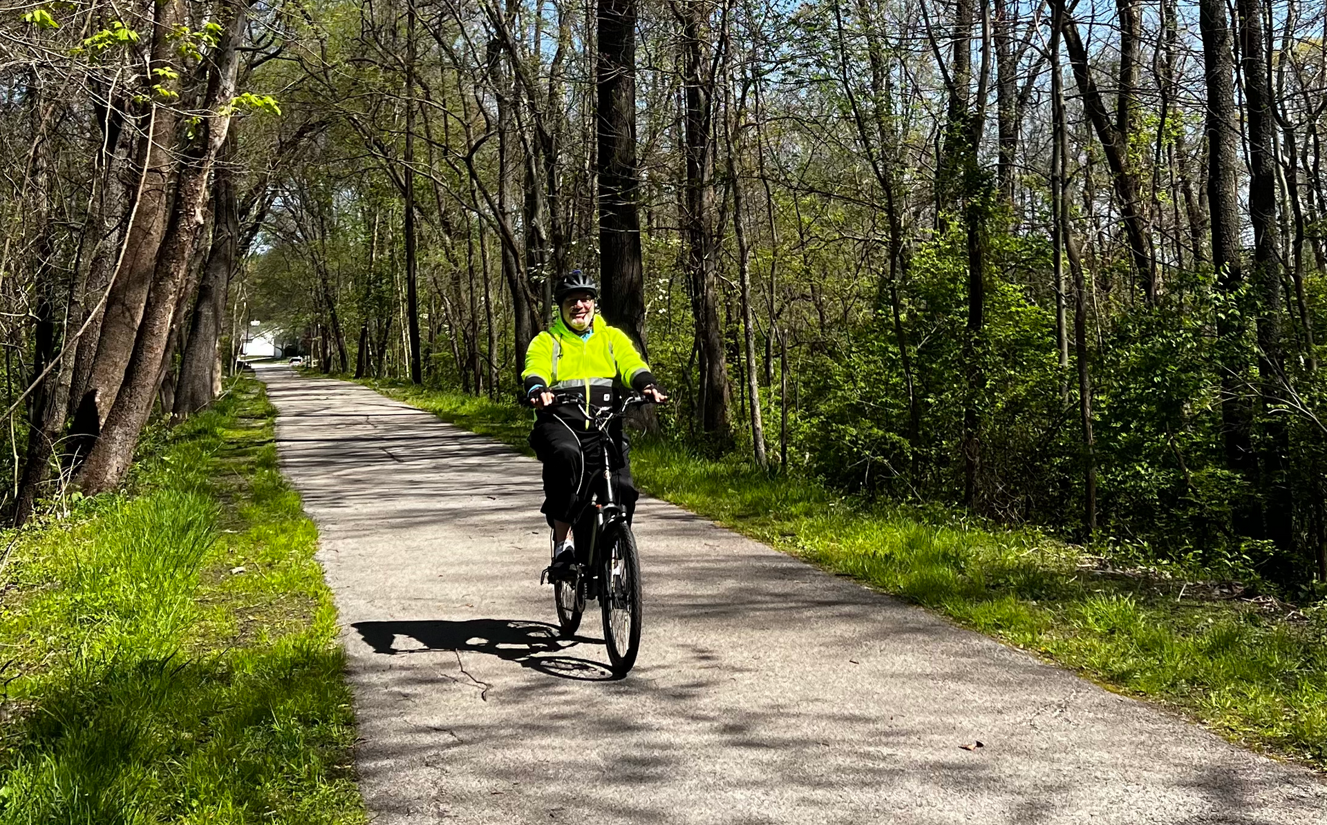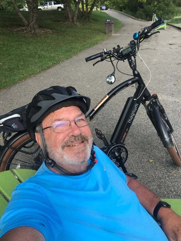 “I only ride on Rails To Trails paths or Greenways that don’t have cars. I’m not willing to risk sharing the road with a car or truck,” he shares. “But] I live in Kentucky, and we don’t have very many of those kinds of trails. Being so close to Ohio, Tennessee, Indiana, Missouri, and Illinois, I began taking 2- to 3-day trips to ride new trails. I was hooked after my first trip!”